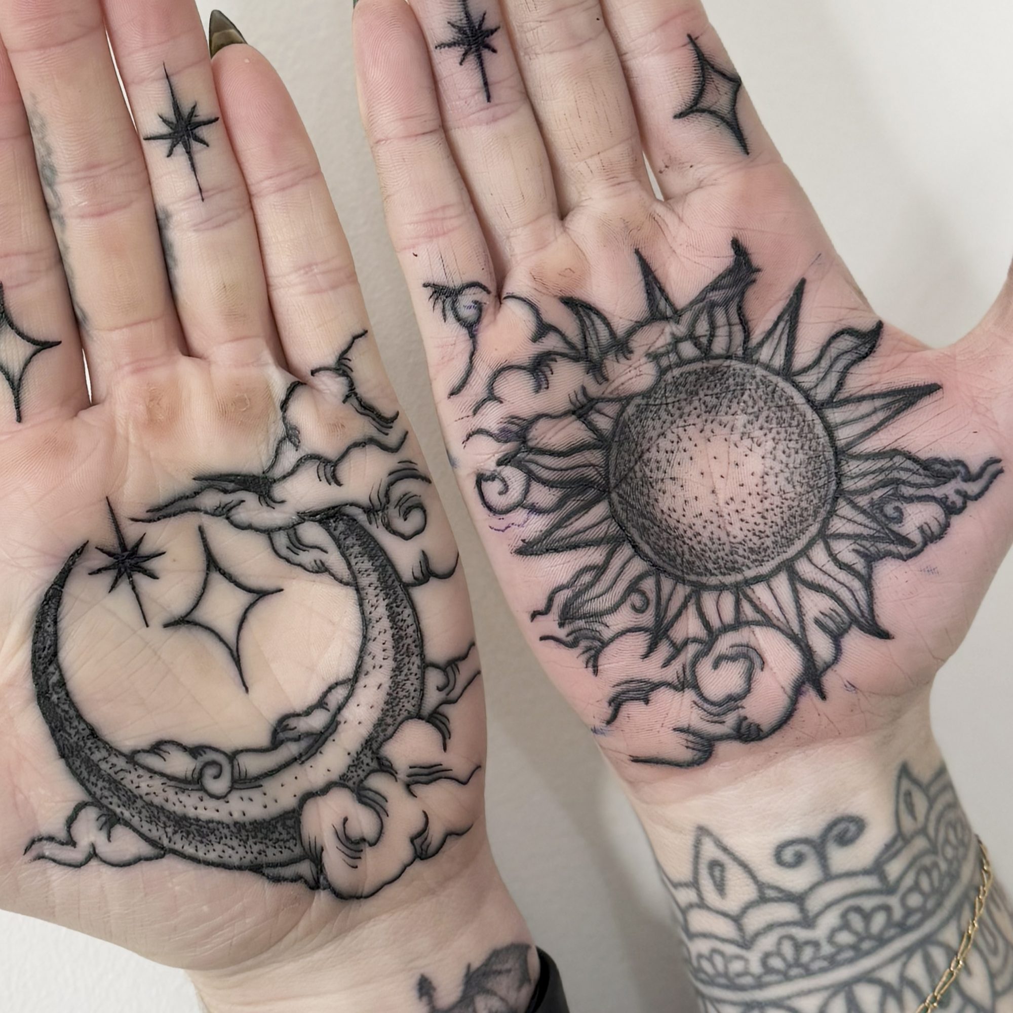 As with any tattoo, choosing an experienced artist is important, and this is especially important when choosing an artist to create palm tattoos for you. The only way to really tell whether you’ve found the right artist for you is to check our their healed work. Without healed work, you’ll never get a good gauge for what the tattoo will actually end up looking like, especially with a palm tattoo, which can often look great when first done regardless of whether or not it’ll look good once healed. If you have any questions or concerns, feel free to reach out – I’m here to help you make an informed decision about your palm tattoo journey.
